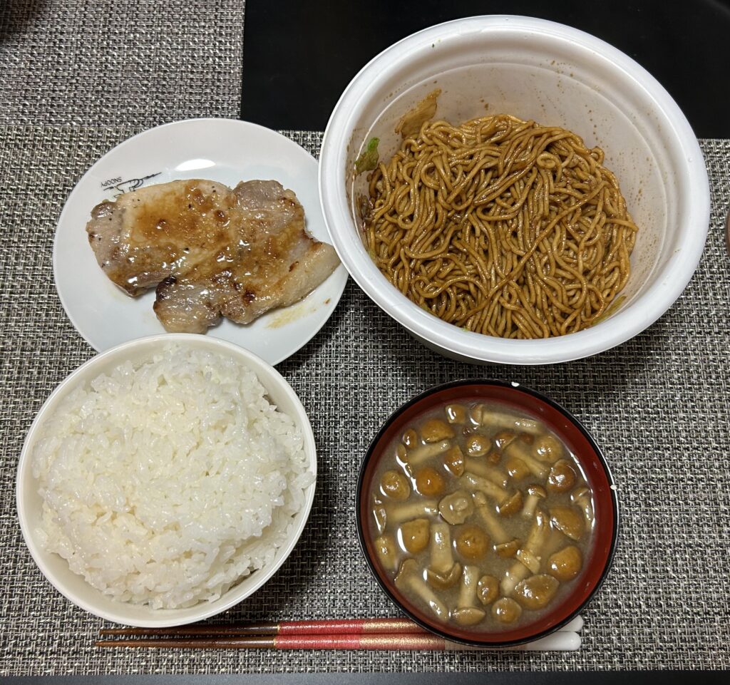 今日の夕食は①ご飯②なめこ汁③焼きそば④レモンガーリックペッパーロースでした。正直、れもンガーリックペッパーって何?と思いましたけど、めちゃ美味かったです。さっぱりしつつ胡椒が効いていて、さりげないガーリックでいいバランスでした。他で味わったことのない味でしたけど、結構美味かったです。あと、彼女様がめっちゃ食べたいと言い始めて、焼きそばを食う羽目になりました。マジできついし、何より夕食後しばらく動けないからタイムロスなんすよね笑