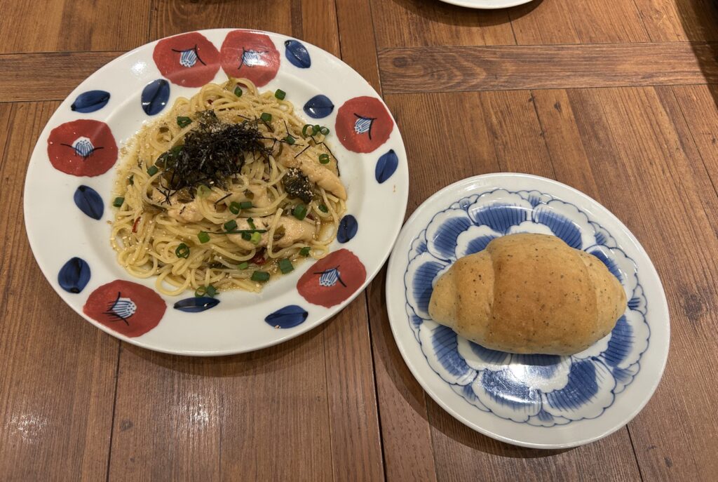 今日の昼食は、名取イオンにある「鎌倉パスタ」で①高菜と鶏肉のピリ辛パスタと②バジルロールを食べました。店としてはクリームソース系のパスタをお勧めしているようでしたが、太るなと思ったし、和風なパスタも好きなのでこのパスタを頼みました。イカ墨があれば一択だったんですけどね。バジルロールは、美味しいんですけど、そもそもパンが得意ではないのでバクバクは食えませんでした。