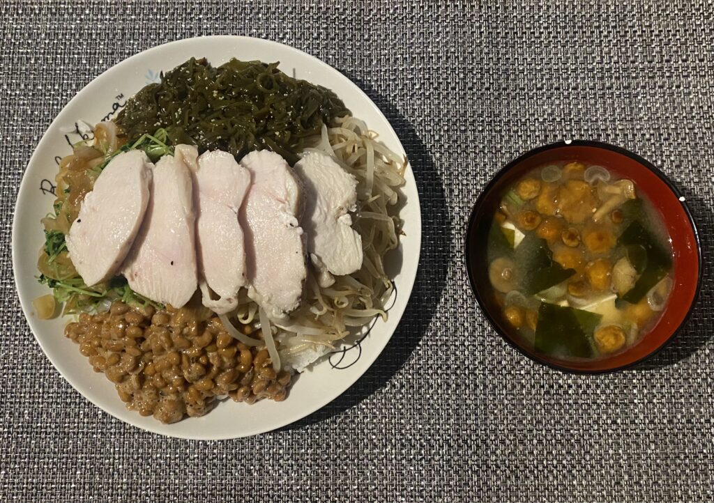 今日の夕食は①鶏ハム激盛り丼②なめこ汁でした。なめこ汁は、昔から大好物なので、マジで作ってくれてあざます!鶏ハム丼は彼女様が「健康的だから!」といって、この写真の具材の下に満遍なく白米が詰まっています。健康的といっても、結局こめ食い過ぎなことには変わりないっすわ。