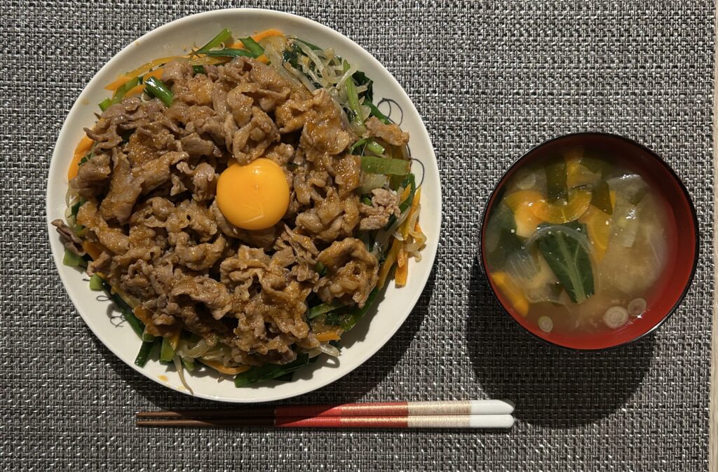今日の夕食は①激盛り!!ビビンバ丼②味噌汁でした。今日も今日で量が半端なかったです笑