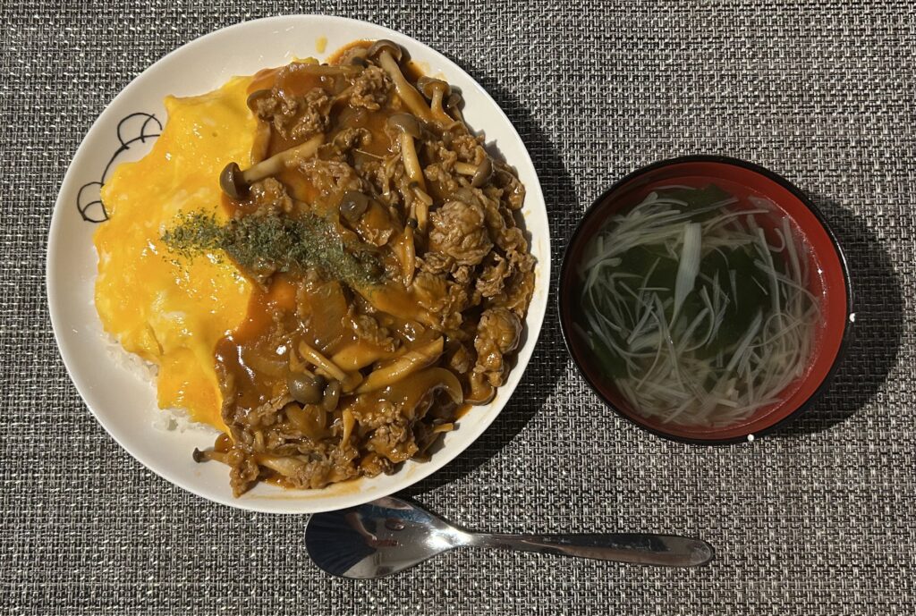 今日の夕食は①ハヤシライス②スープでした。どちらも絶品でした。ハヤシライスはいつものトマト強めのやつではなく、少しスパイシーで卵の甘みとマッチして最高でした。今日も飯がうめーっすわ!!