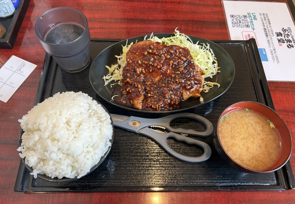 まず、今日の昼食はトンテキ定食を食べました。ハサミがついてきましたけど、めんどくさかったのでかぶりついて食べました。おかわりライス一杯無料だったのですが、すぐに腹がいっぱいになっておかわりしませんでした。めっちゃ美味かったし、油も乗ってて味付けも完璧でしたけど、食べれません。現役引退かもしれません。