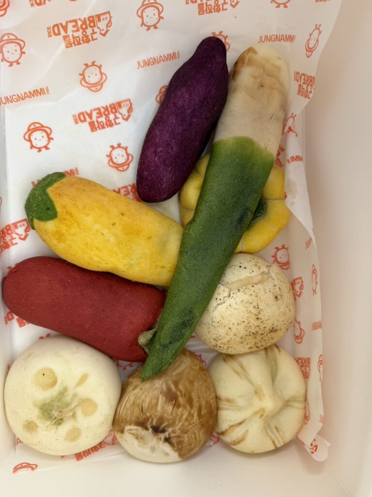急遽彼女様が食べたい!と言うことで新宿の高島屋に行って、野菜パンと言うものを買いました。該当する野菜の味付けがしてあるもち米パンなのですが、正直自分は苦手な味付けでした。もちもちで食感は完璧なのですが、甘いのかしょっぱいのかよくわからない味付けでした。自分は苦手でした。笑