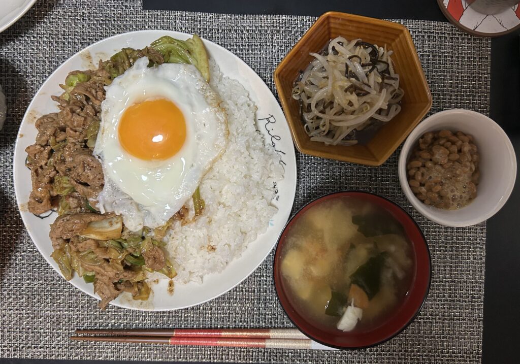 今日の夕食は①爆盛り回鍋肉丼②味噌汁③納豆④ナムルでした。1日空いたぶん、自分も彼女様の飯が食べたかったし、彼女様も作って食わせたいという気持ちがフュージョンして、写真のような爆盛りになりました。さすがに食い終わった後、しばらく動けませんでしたけど、マジでうまかったです、回鍋肉を別皿じゃなくて、このようにコメの横にあるとどんどん食ってしまいます。やっちめぇました!