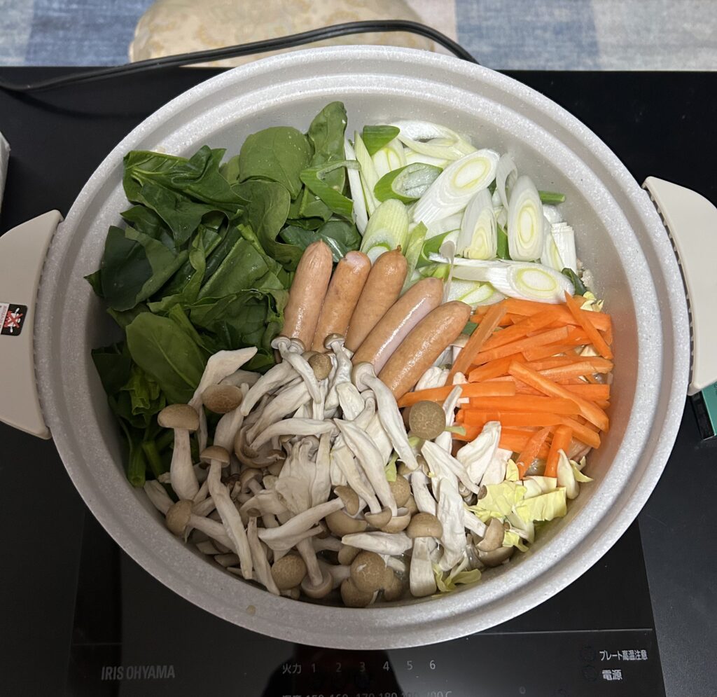 今日の夕食は豚骨醤油の鍋でした。彼女様が丁寧に作ってくれて最後まで美味しく食べれました。正直締めにラーメンをぶち込んで食べましたけど、きつかった笑 酒も飲んでいたので、食いすぎて酔っ払いました笑