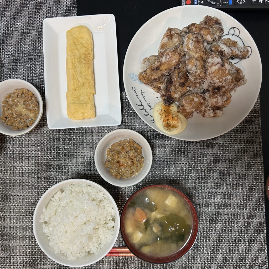 今日の夕食は、①ご飯②味噌汁③納豆④唐揚げ⑤卵焼きでした。今日の夕食もめちゃくちゃ美味かったです。最高すぎます。腹痛いですけど、ガツガツ食べてしまいました。そろそろ肌が本格的に爆発しそうです。