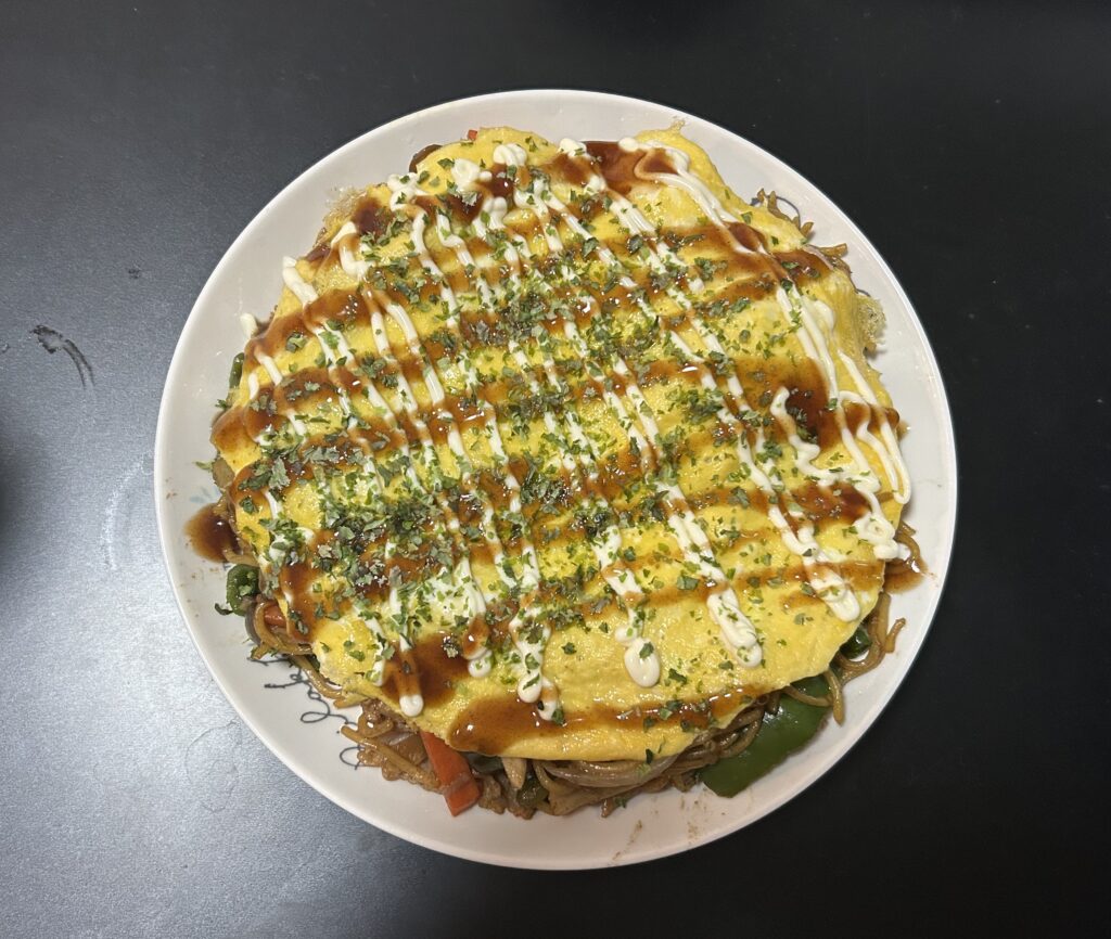 今日の夕食は焼きそばを作りました。焼いた卵を乗せてオムそば風にしました。隠し味にいつも秋肉のタレをぶち込むのですが、マジでうまかったし、結構量があったんですけどぺろっと食っちゃいました。これ絶対元気っす。笑