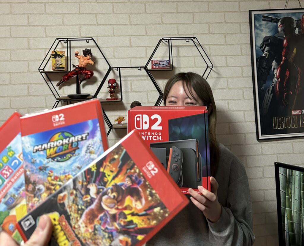 今日は、ゲオによってSwitch2が売っているのを発見してしまい、迷いに迷って結局買ってしまいました。散財です。昨日のゲーム投稿からゲーム熱が爆発しています。そして、年内リストのSwitch2を買うをクリアしました。彼女様も楽しそうにゲームをしてくれていて満足です。マイクラだけでなく、準備が整い次第、Switch2でも動画を作っていければと思っています。やりたいことがたくさんあって楽しい!ワクワクしますわ!!