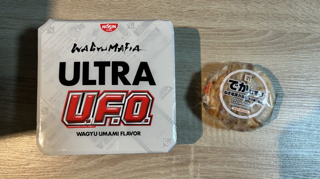 今日の夕食は帰りのセブンで買ったWAGYU MAFIAのUFOとでか豚カルビおにぎりでした。彼女様が飲み会でいなかったので、そういう時の夕食なんてこんなもんです笑