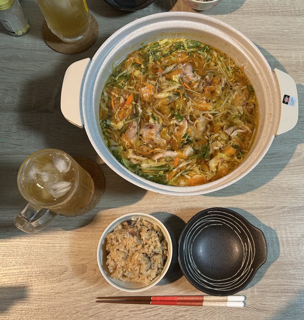 また、鍋に関しても野菜こんもりで、満足感のある鍋でした。今日も幸せっすわん。