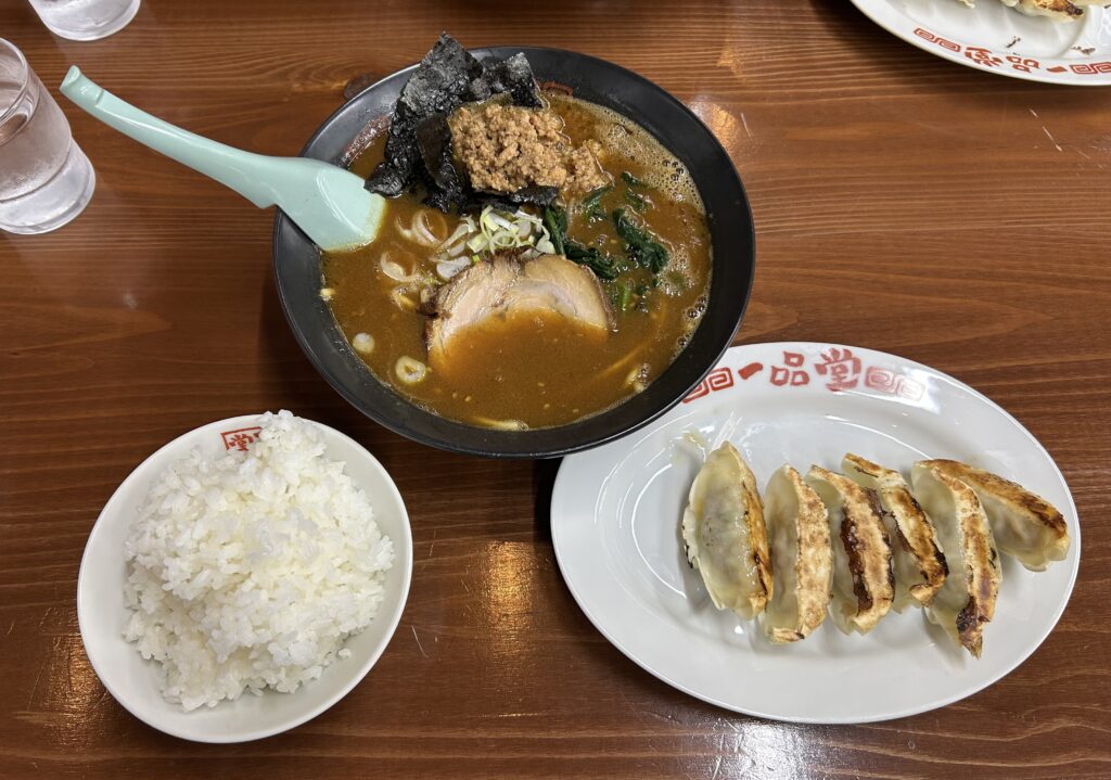 今日の夕食は「一品堂」でっ味噌ラーメンセットを食べました。このセットはご飯と餃子が6個ついてくるのですが、彼女様も同じセットを頼んで、ご飯はこっちに持ってくるし、餃子は写真にプラス2個で計8個食いました。めっちゃ美味いけど、さすがに食いすぎた。家でも外でも彼女様に食わさせられます。逃げ場無し!!